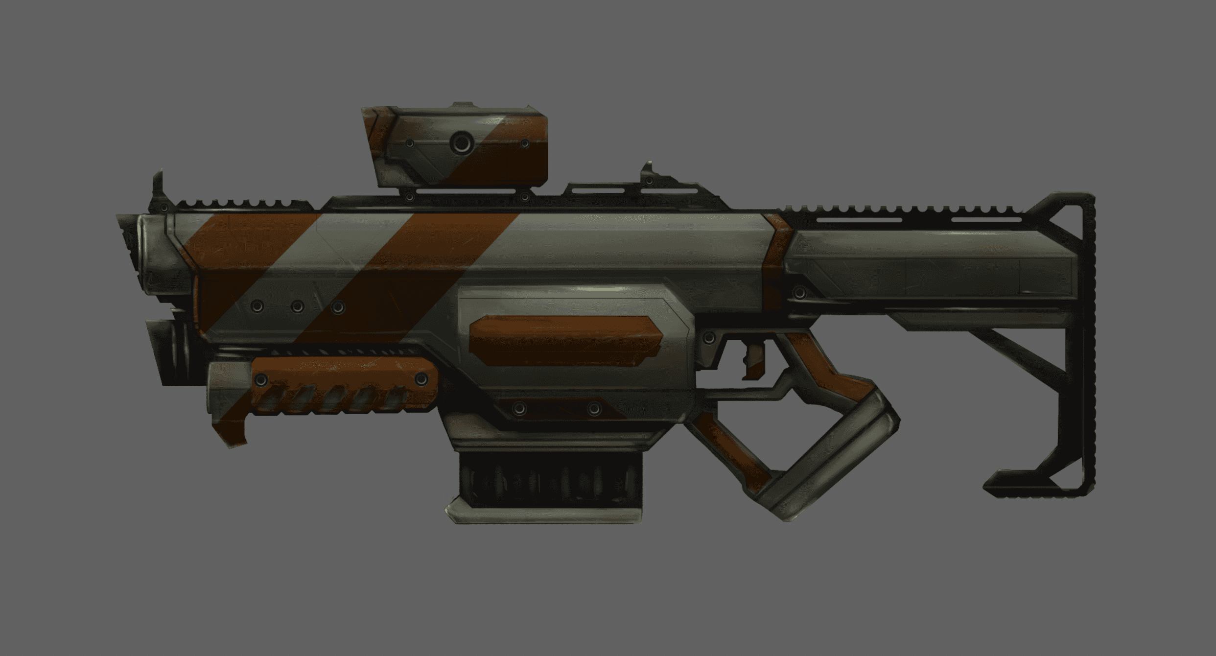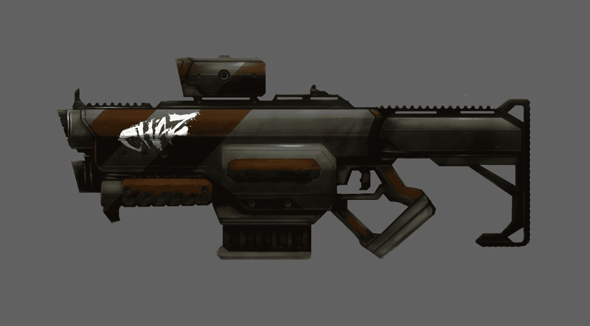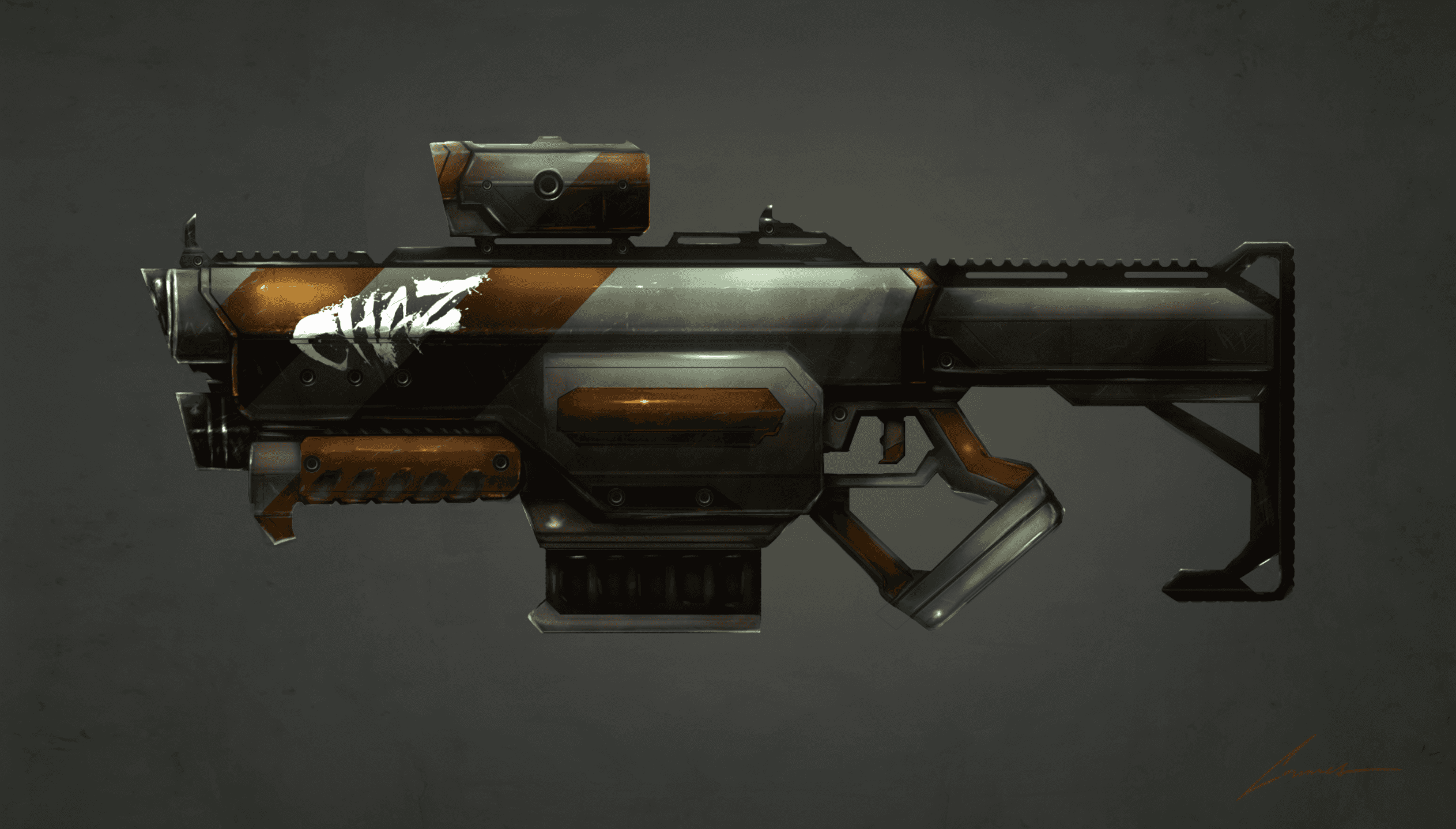 The goal with this pulse rifle was to create a weapon that seemed semi-futuristic with a modern feel. The shorter length allows the handler to round corners more efficiently in confined spaces, sacrificing range for mobility.