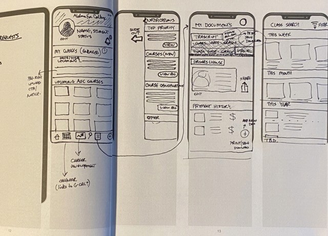I continued to ideate on the glass walls and, leveraging insights from user research, envisioned the AFT student login and account user flow experience.